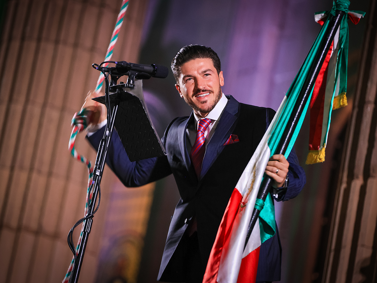 El Mandatario estatal, acompañado de Mariana Rodríguez Cantú, sus hijas Mariel e Isabel y su Gabinete de Gobierno, realizó el acto protocolario, recibiendo la bandera y posteriormente dirigiéndose a las escalinatas de Palacio de Gobierno posteriormente tocó la campana y encabezó el Grito de Independencia destacando la grandeza de Nuevo León como el primer lugar en todo y honrando a los héroes que nos dieron la patria.