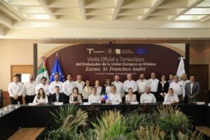 Ciudad Victoria, Tamaulipas. – El embajador de la Unión Europea en México, Francisco André, destacó el trabajo del gobernador Américo Villarreal para crear las condiciones de seguridad que permiten tener en Tamaulipas el clima idóneo de confianza para la inversión y el desarrollo empresarial.
