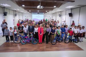 Ciudad Victoria, Tamaulipas. Con el propósito de garantizar el bienestar, reducir el ausentismo y la deserción escolar de niñas y niños en comunidades de atención prioritaria, el Gobierno de Tamaulipas, a través del Sistema DIF Tamaulipas, presidido por la doctora María de Villarreal, y la Fundación Telmex Telcel, realizaron la entrega de 100 bicicletas a igual número de beneficiarios de siete municipios del estado.