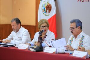 “Ustedes nos han aportado realmente en esta tarde, en estas horas de trabajo y las que nos han brindado también en sus reuniones y que me llegan a través de Gustavo (Guzmán), en algunas apreciaciones y tomas de decisiones por el Gobierno del Estado, pues ustedes nos aportan oro molido para nuestro puerto, que es también suyo, para el desarrollo de nuestra entidad y, desde luego, de nuestro país”, expresó.