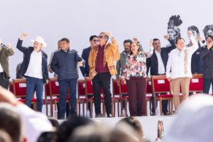 Ciudad de México.- El gobernador de Tamaulipas, Américo Villarreal Anaya, junto a la doctora María de Villarreal, presidenta del Sistema DIF Tamaulipas, acompañó a la presidenta Claudia Sheinbaum Pardo durante la celebración de los 7 años de la Cuarta Transformación, ante más de 600 mil mexicanas y mexicanos reunidos en el Zócalo de la Ciudad de México.