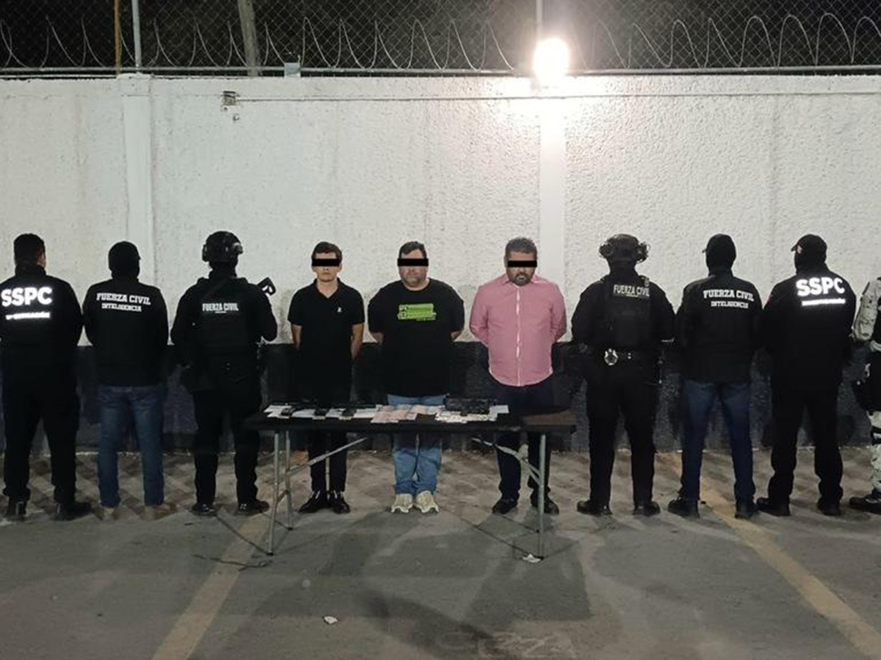 Monterrey, Nuevo León.- Tres civiles armados fueron detenidos anoche en sur de Monterrey por el Grupo de Coordinación Metropolitana, integrado por la institución policial Fuerza Civil, en coordinación con la Secretaría de Seguridad y Protección Ciudadana federal, la Guardia Nacional, la Defensa, el Centro Nacional de Inteligencia, la Fiscalía General de la República, la Fiscalía General de Justicia de Nuevo León, así como la Agencia Estatal de Investigaciones.
