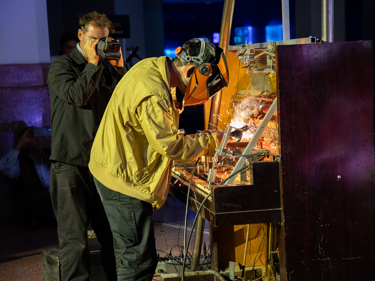 Cada sesión generó una experiencia sonora irrepetible, en la que el instrumento, el espacio y el público establecieron un diálogo directo, habitando la frontera entre escultura, máquina e instrumento musical.