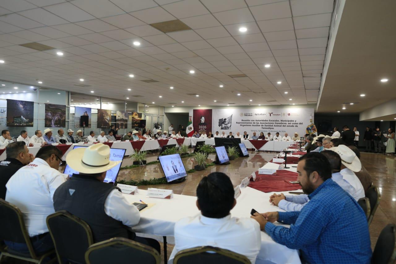 Durante una reunión con presidentas y presidentes municipales, titulares de asociaciones ganaderas, la dirigencia de la Unión Ganadera Regional de Tamaulipas y productores ganaderos, el gobernador del estado reiteró todo su apoyo a la estrategia y destacó la inmediata respuesta de la presidenta Claudia Sheinbaum para respaldar al sector ganadero de la entidad.