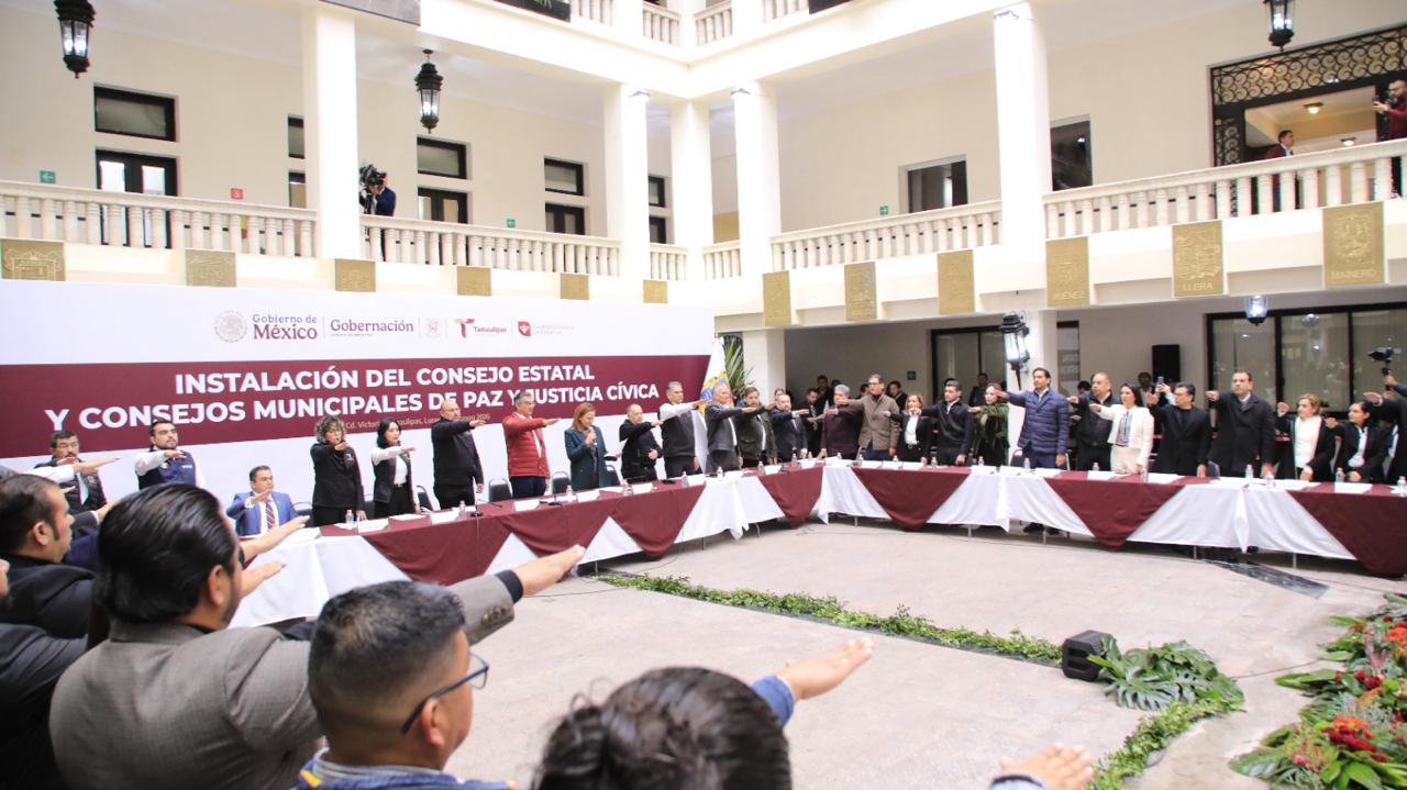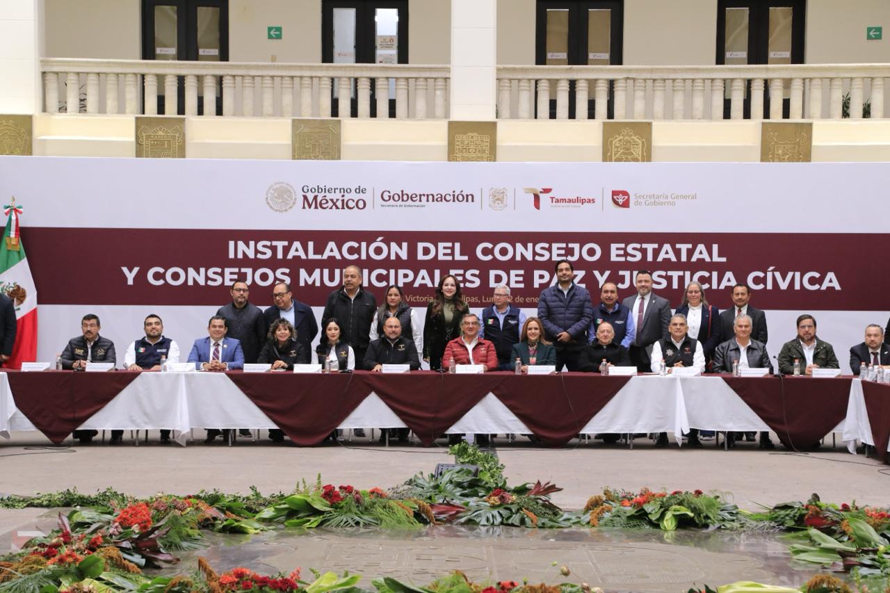 Ciudad Victoria, Tamaulipas.- Al reconocer el compromiso responsable con las y los ciudadanos que tiene el gobernador Américo Villarreal Anaya, la titular de la Unidad de Asuntos Religiosos, Prevención Social y la Reconstrucción del Tejido Social de la Secretaría de Gobernación, Clara Luz Flores Carrales, presidió aquí la instalación y toma de protesta al Consejo Estatal y de nueve Consejos Municipales de Paz y Justicia Cívica; además, entregó 50 títulos y certificados de asociaciones religiosas, convirtiendo a Tamaulipas en la primera entidad en donde se otorgan estos documentos.Durante el evento celebrado en la explanada de Palacio de Gobierno, el gobernador Villarreal Anaya ratificó el compromiso para atender con toda determinación la convocatoria de la presidenta Claudia Sheinbaum en el rubro de atención a las causas sociales de la violencia, y aseguró que Tamaulipas se suma desde estos consejos, que hoy se formalizan, al objetivo humanista de construir una verdadera cultura de paz. “La paz no es solo la meta, es el camino”, destacó.